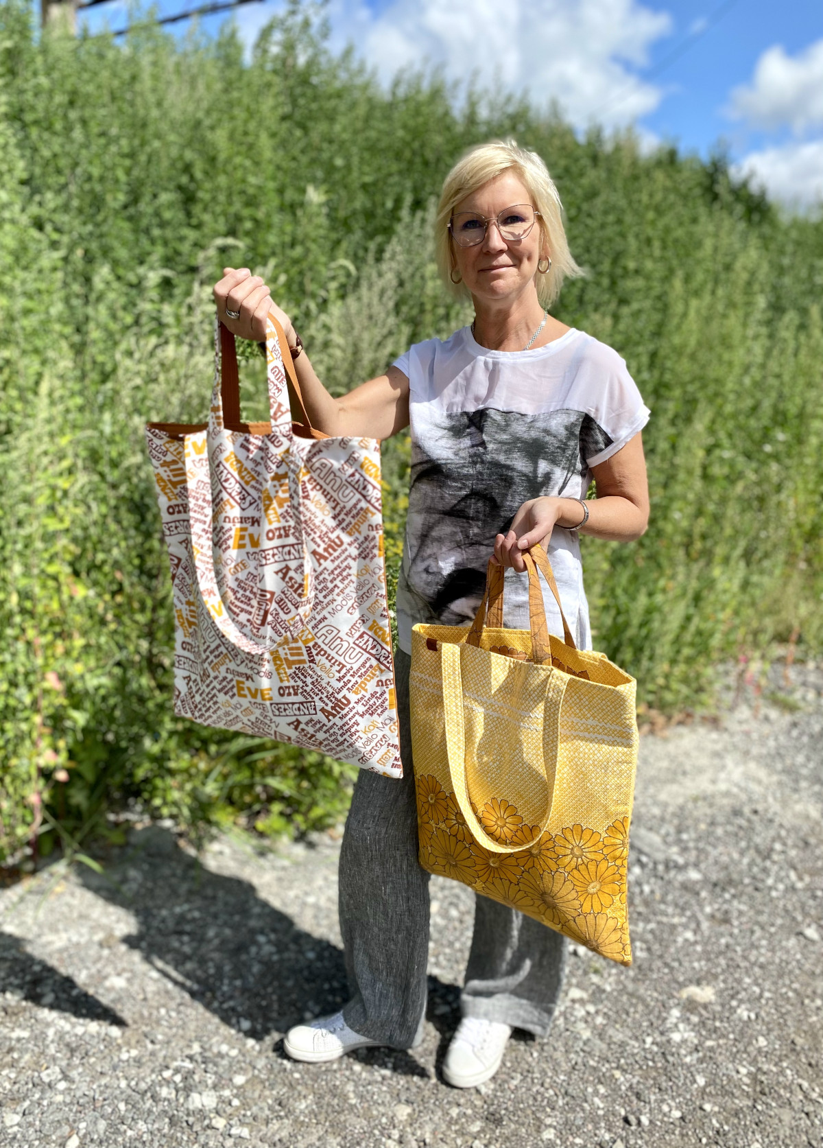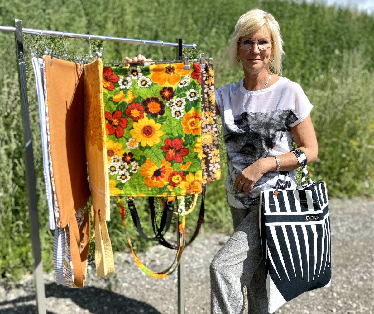 Heaks materjaliks kangaskottide valmistamiseks on Kersti sõnul nõukaaegsed retrokangad.