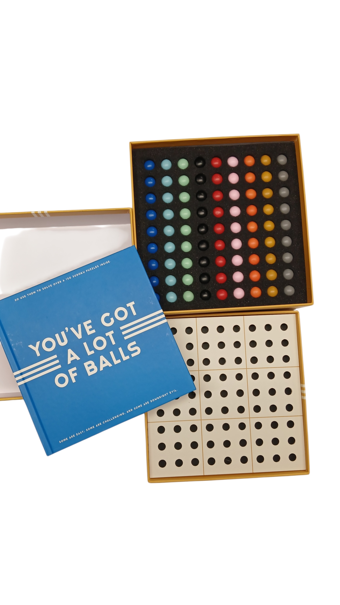Komplektis on 81 palli ja mänguraamat sadade ülesannetega, mida sõpradega (või üksi, kui see sulle meeldib) lahendada. Boonus: kõik saab karpi panna (see on ka mängulaud), seega sobib see ideaalselt reisimiseks.