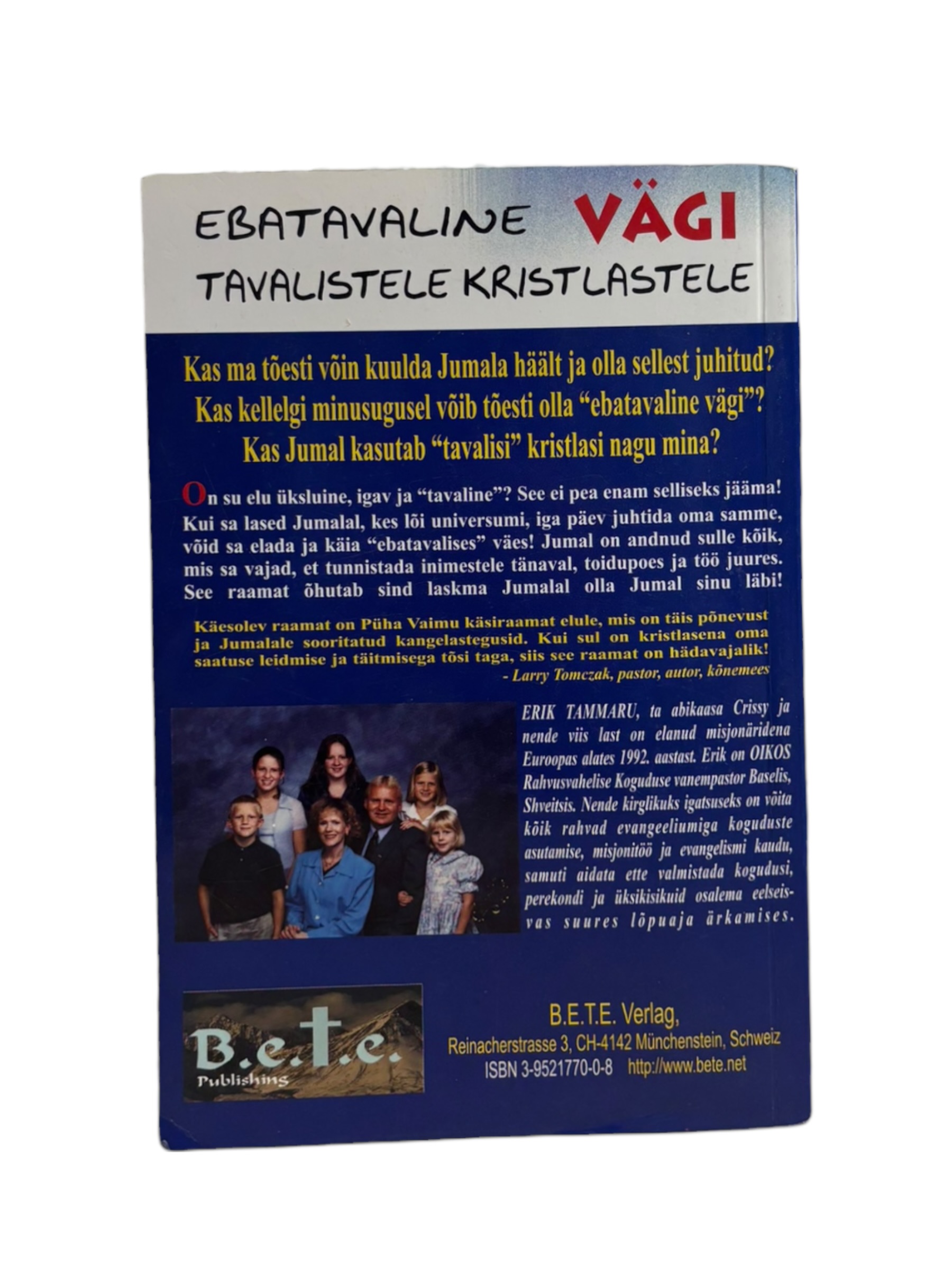 Ole esimene, kes paneb toote ''Ebatavaline vägi tavalisele kristlasele'' Erik Tammaru korvi 15 minutiks, enne kui keegi teine selle ostab!