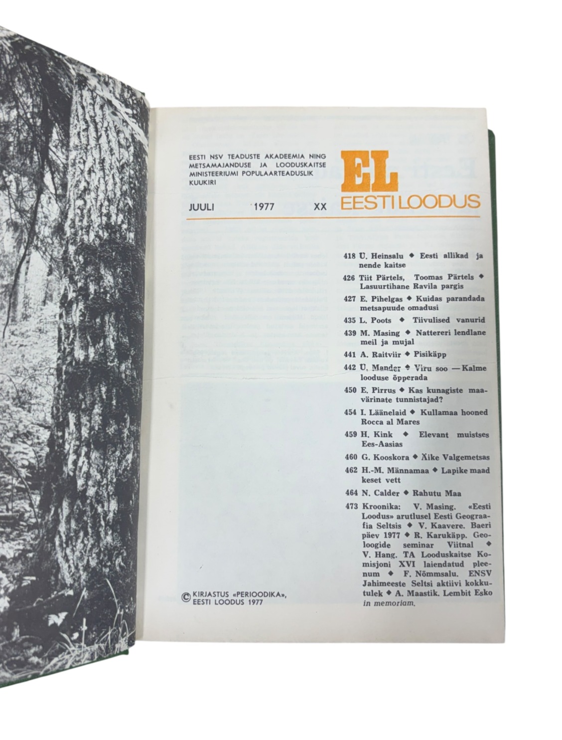 ”Eesti loodus 1977 I-II” Kirjastus Perioodika
