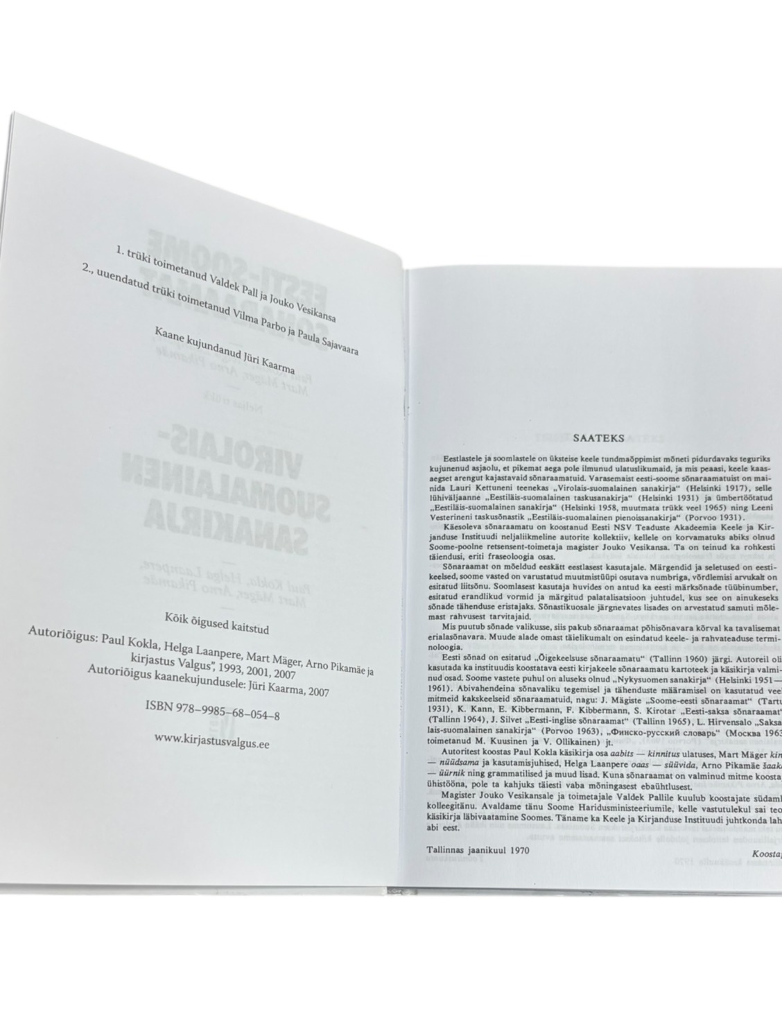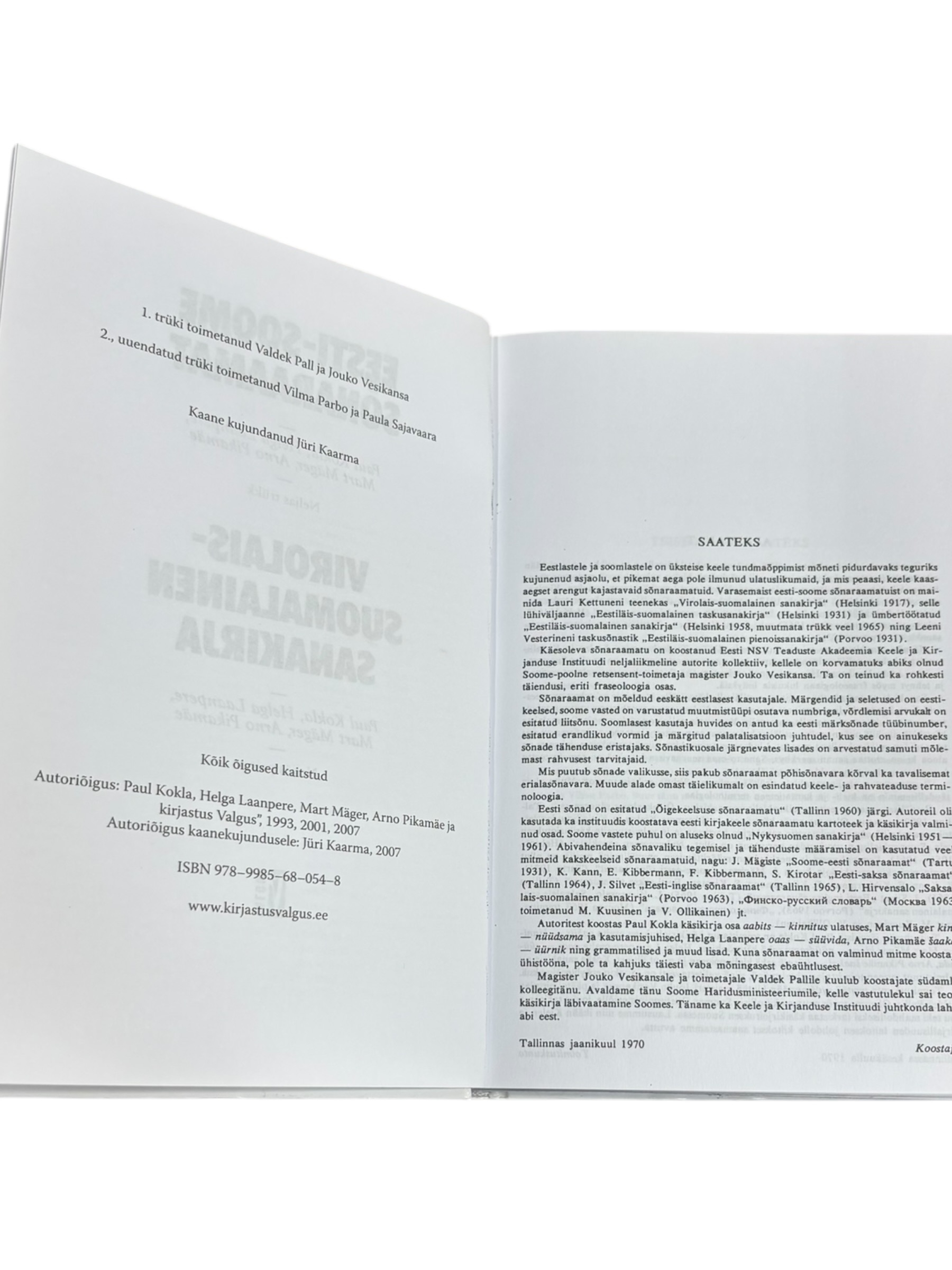 ”Eesti-Soome sõnaraamat” Paul Kokla, Helga Laanpere, Mart Mäger, Arno Pikamäe