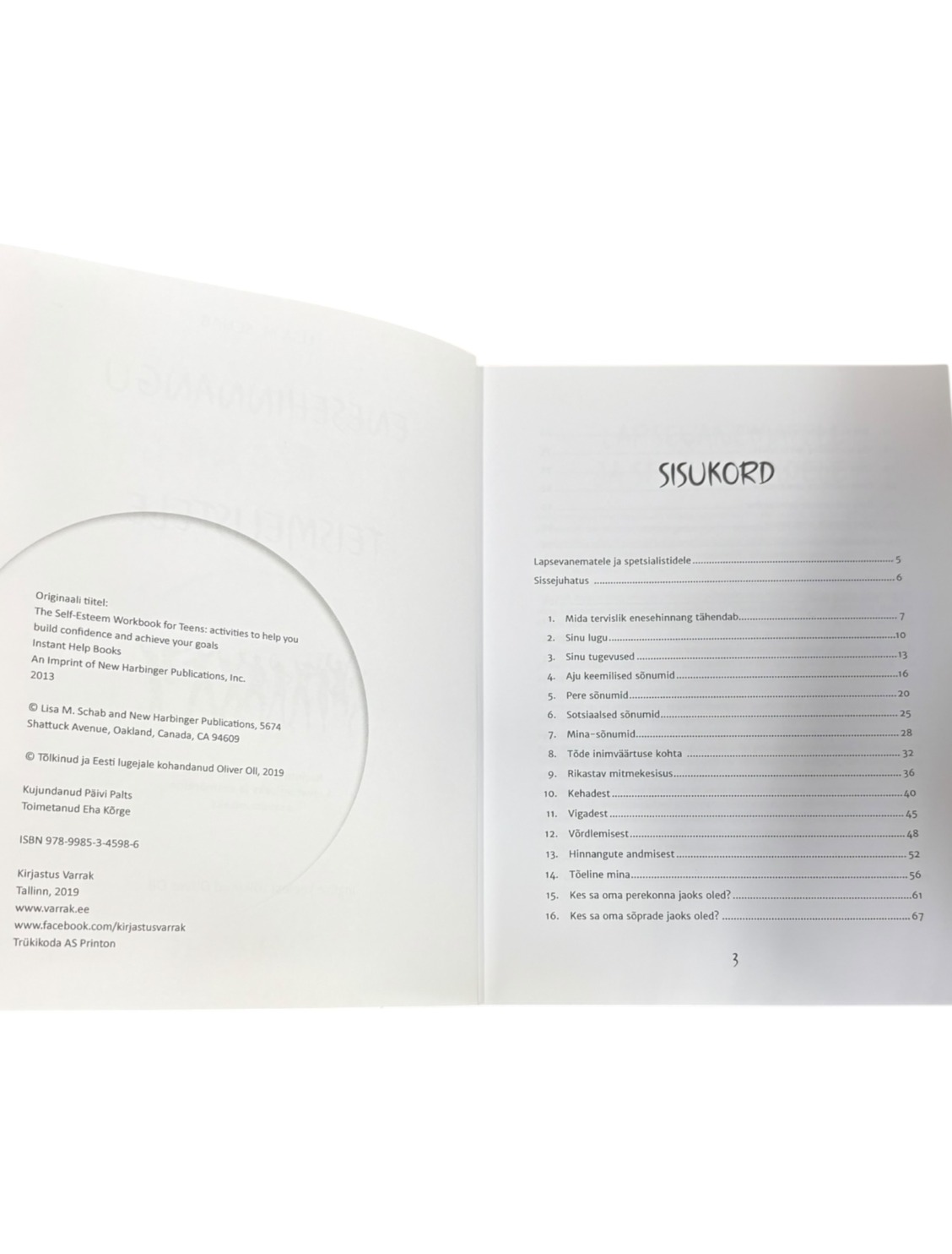 ”Enesehinnangu tööraamat teismelistele” Lisa M. Schab