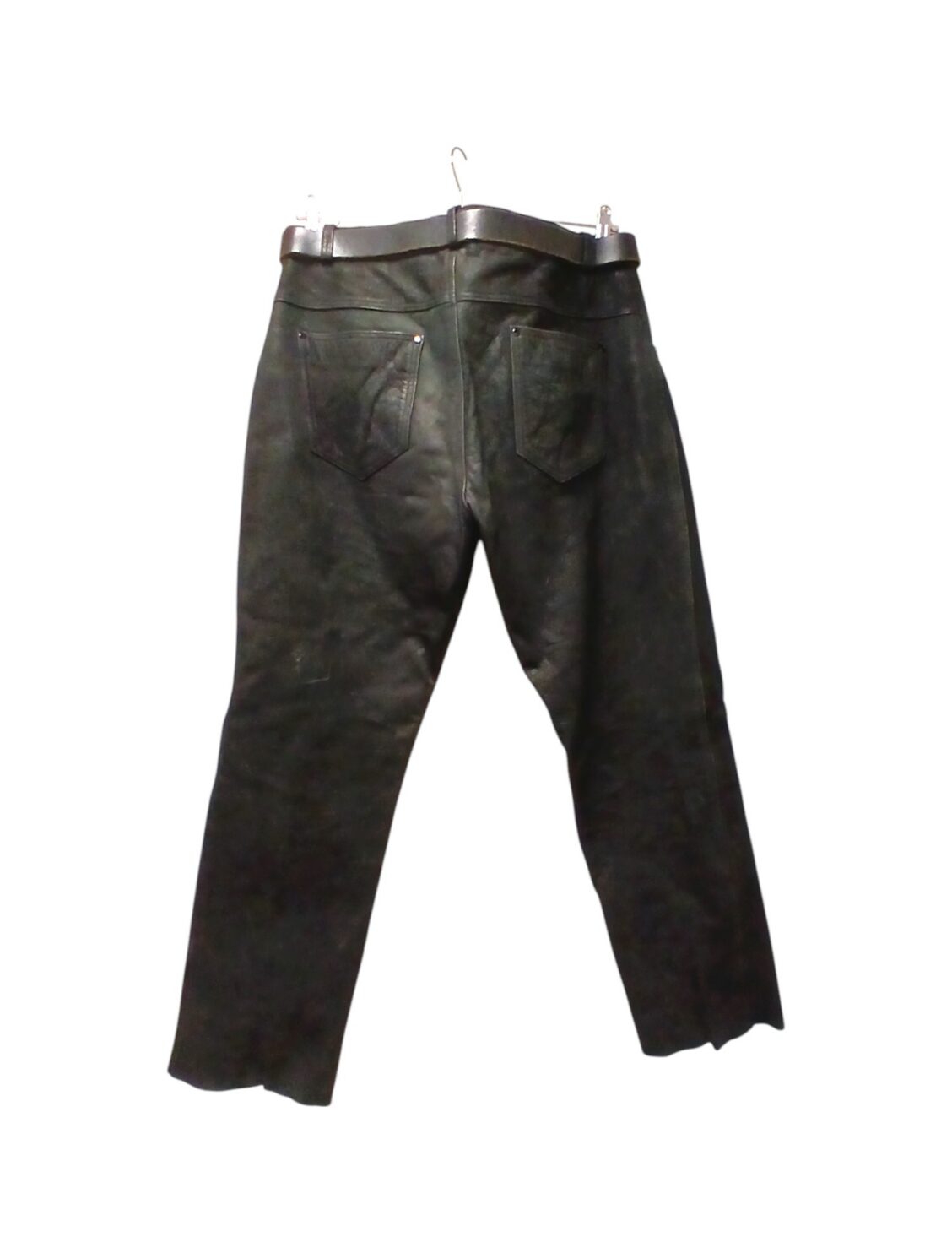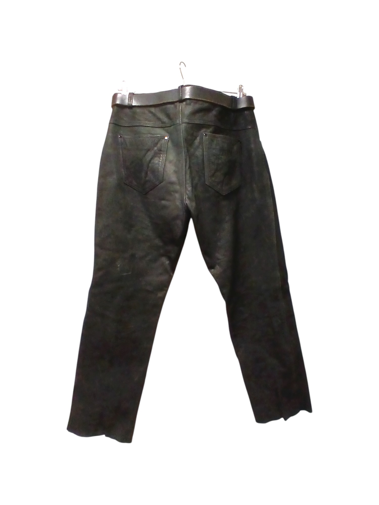 Held nahast mootorratturi püksid rihmaga.