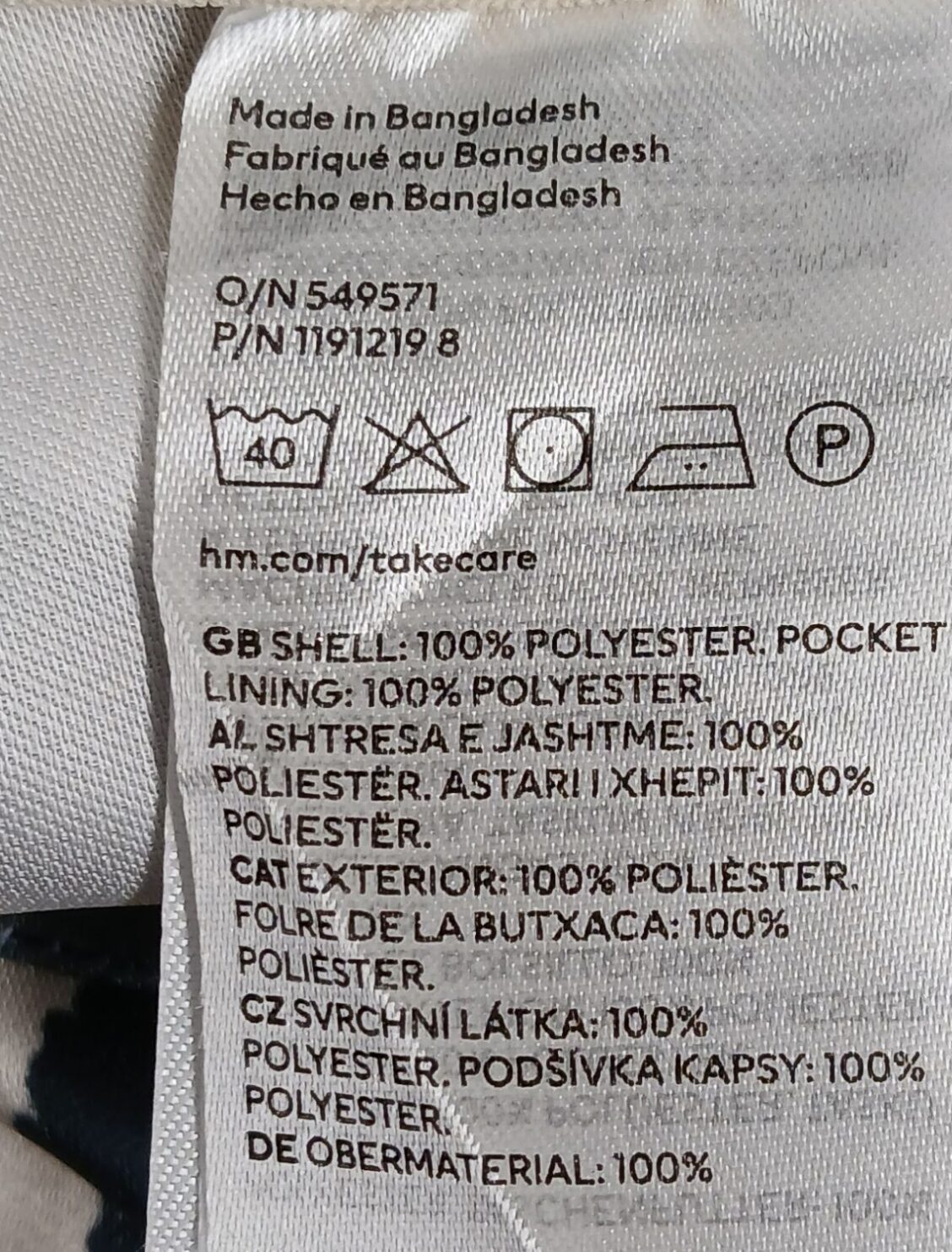 Materjal: 100% polüester; tasku: 100% polüester