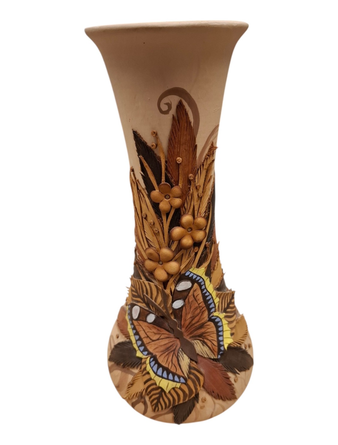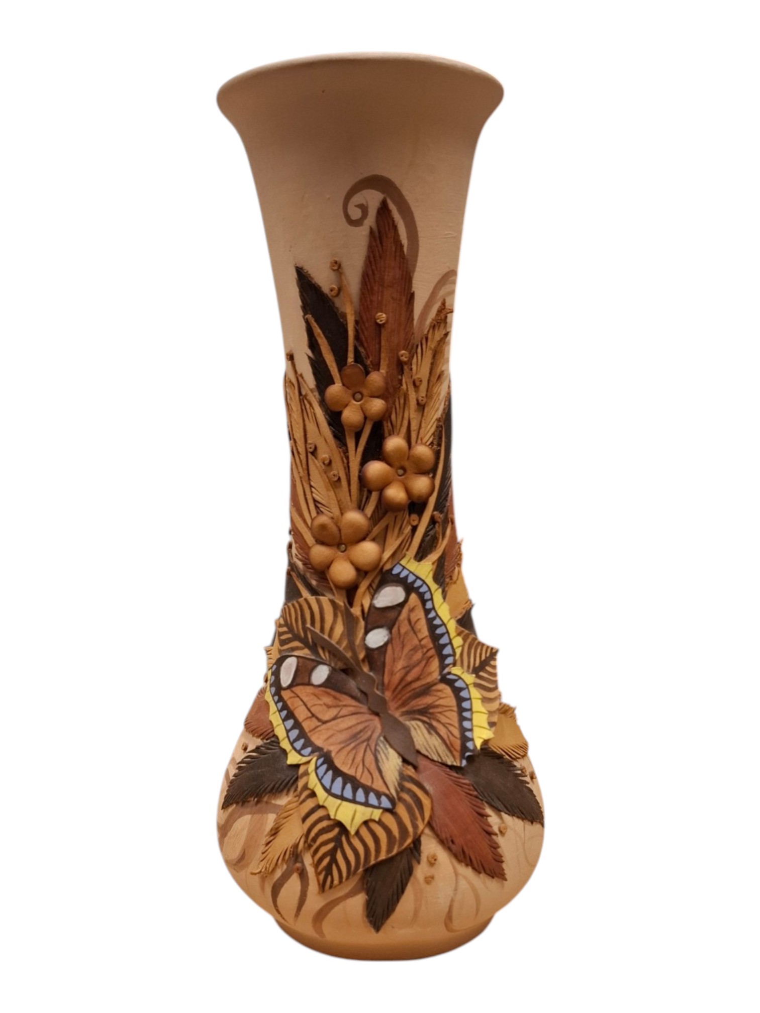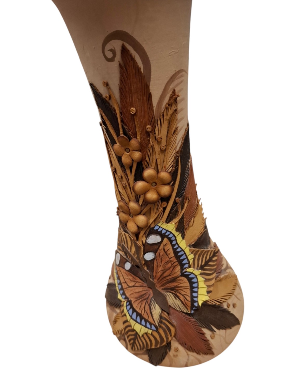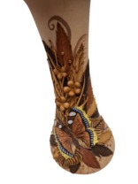 Keraamiline vaas kaunistatud nahkehistööga