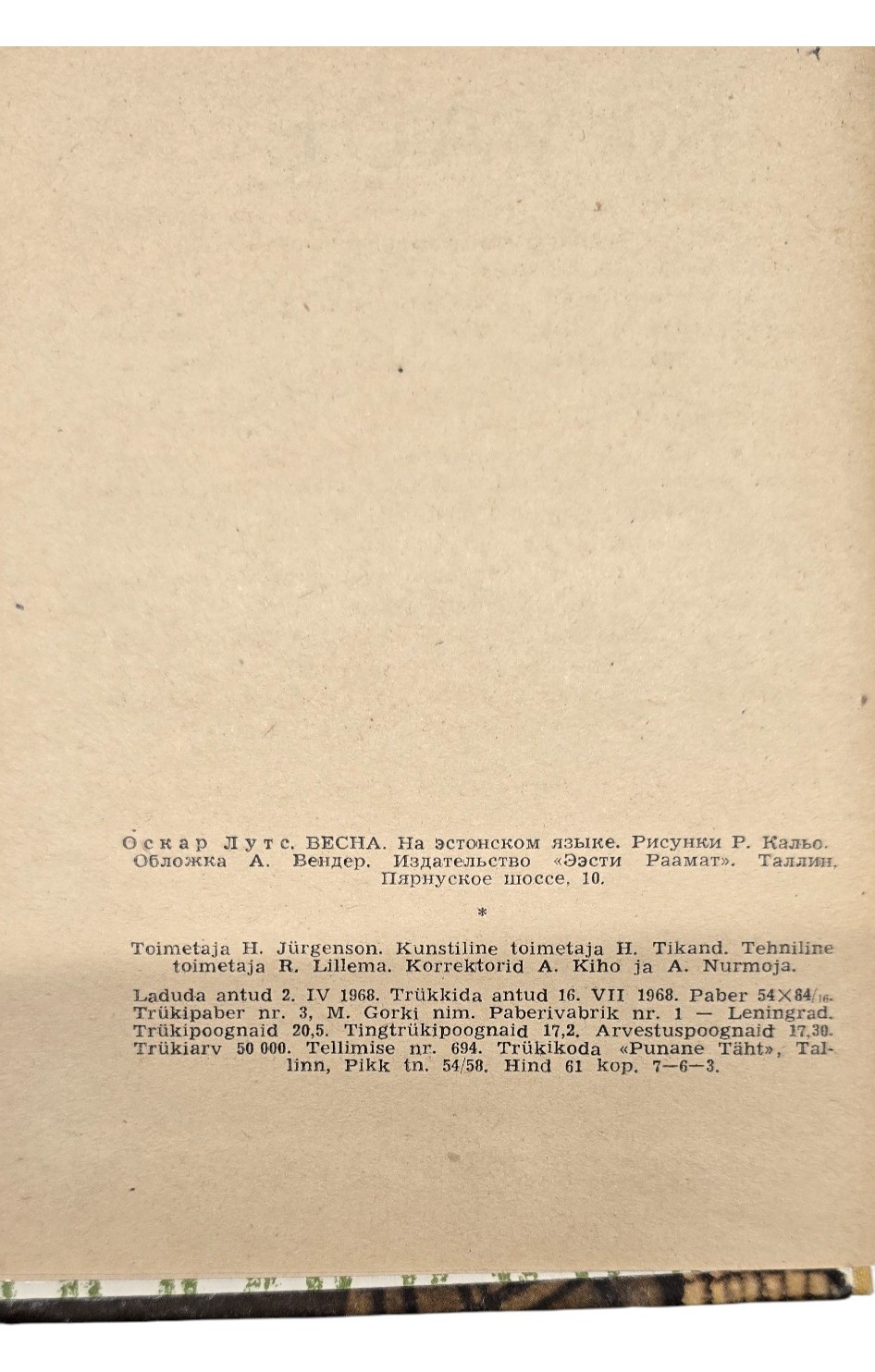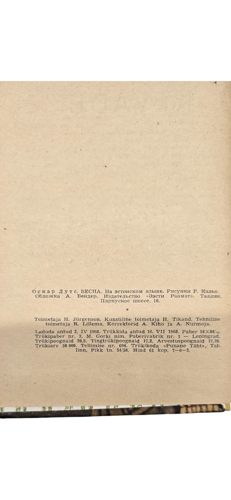 Lisamärkused: Kõvakaaneline, 328lk, 1968a.