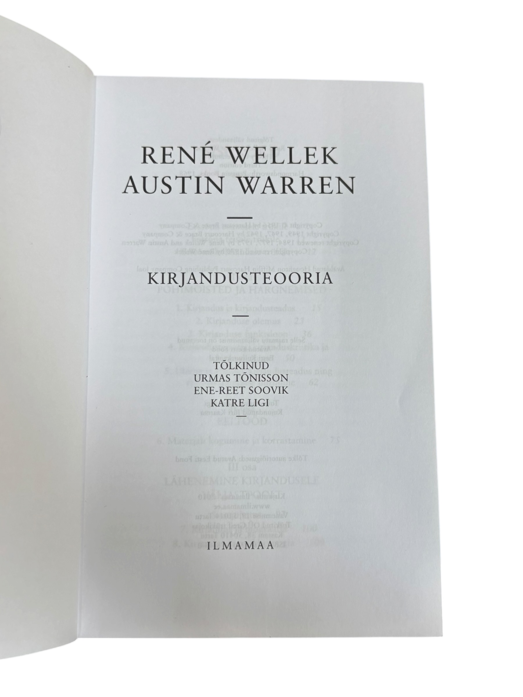 ”Kirjandusteooria” Rene Wellek, Austin Warren