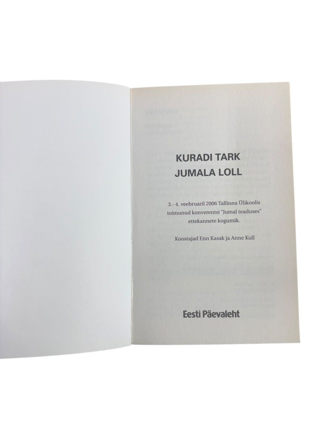 Ole esimene, kes paneb toote ''Kuradi tark. Jumala loll'' Enn Kasak, Anne Kull korvi 15 minutiks, enne kui keegi teine selle ostab!