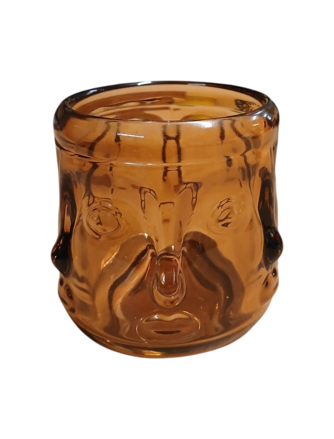 Lisamärkused: klaasist küünlapurk on kaunistatud rahumeelsete Buddha nägudega reljeefse mustriga