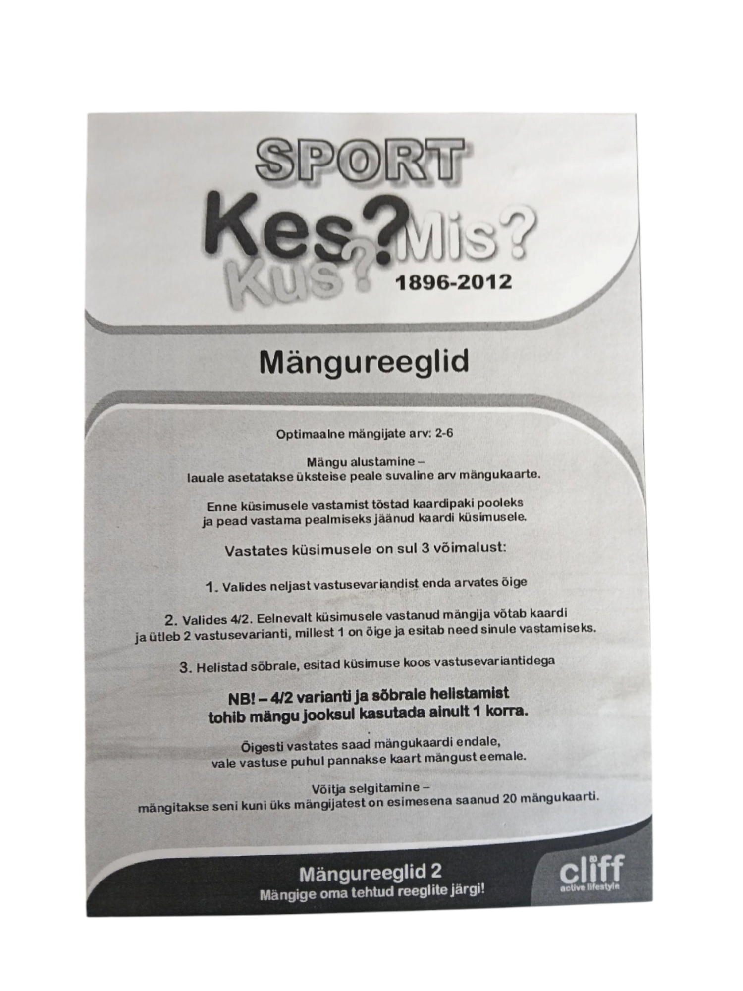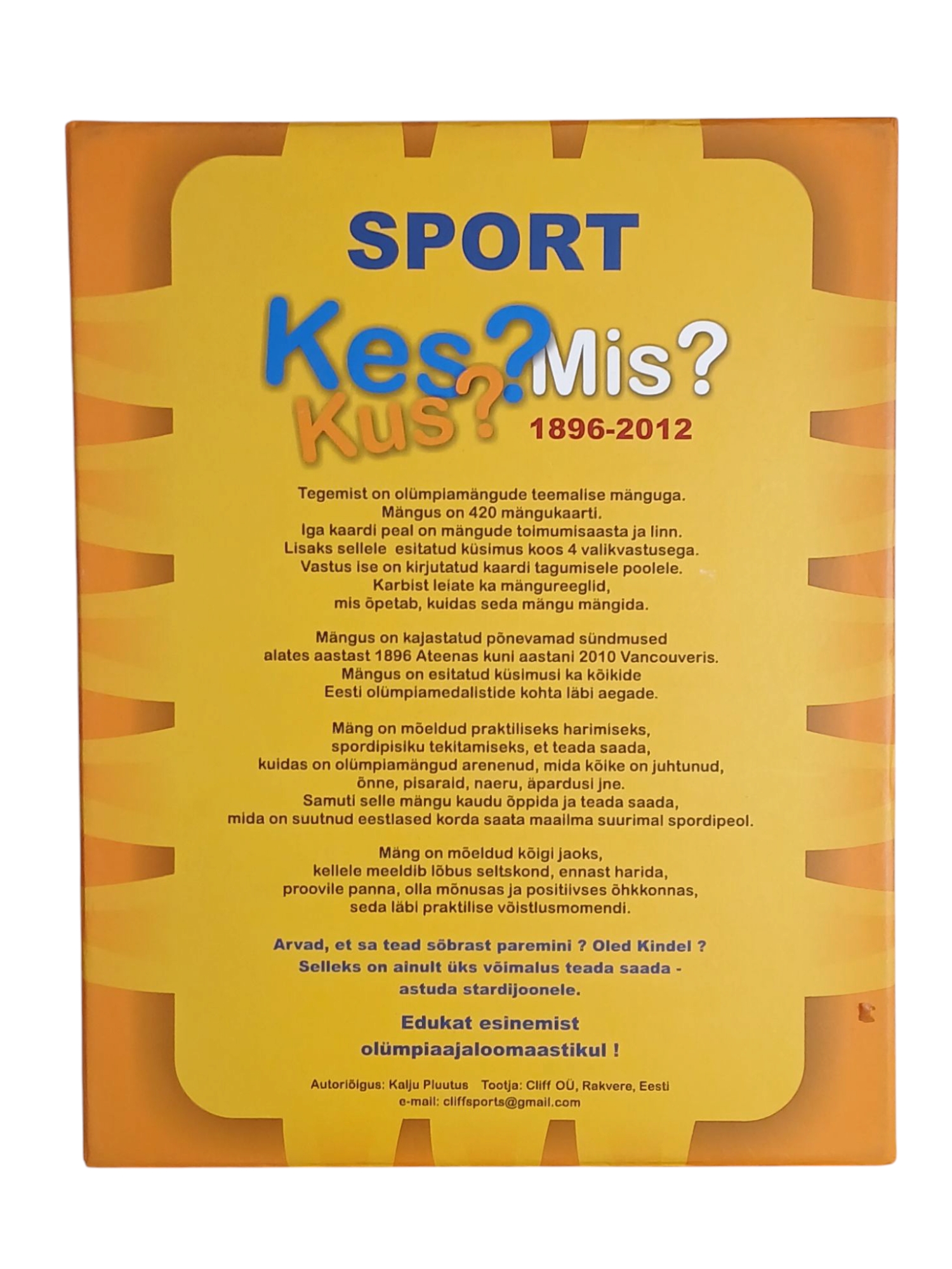 Olümpiateemaline lauamäng, mis kajastab põnevamad sündmused alates aastast 1896 kuni aastani 2010. Arvad, et tead sõbrast paremini? Oled kindel? Selleks on ainult üks võimalus teada saada – astuda stardijoonele. Mäng on mõeldud kõigile, kellele meeldib ennast proovile panna ja ennast harida.