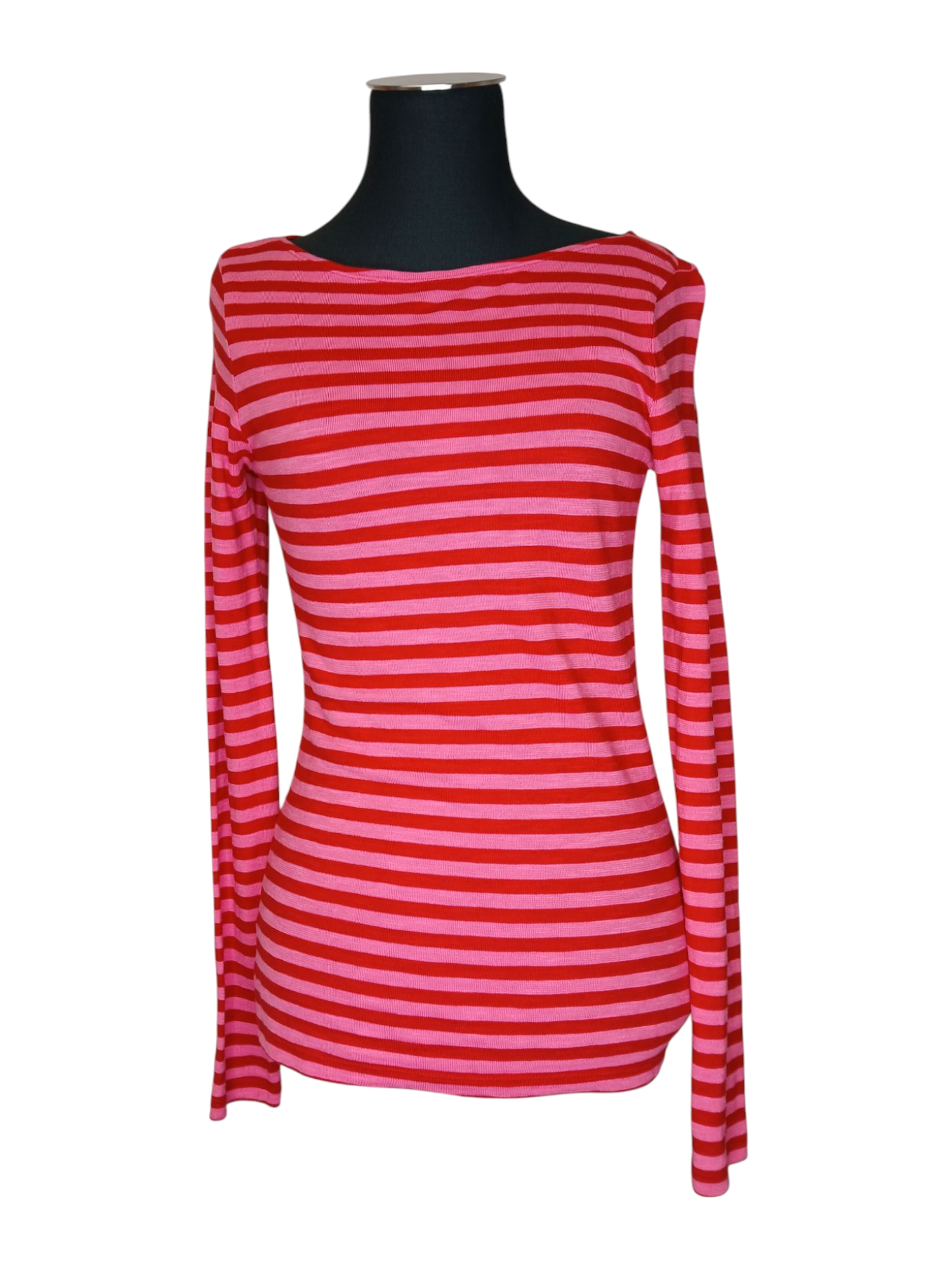 Marc O`Polo punase-roosa triibuline naiste trikotaažsärk (XS)
