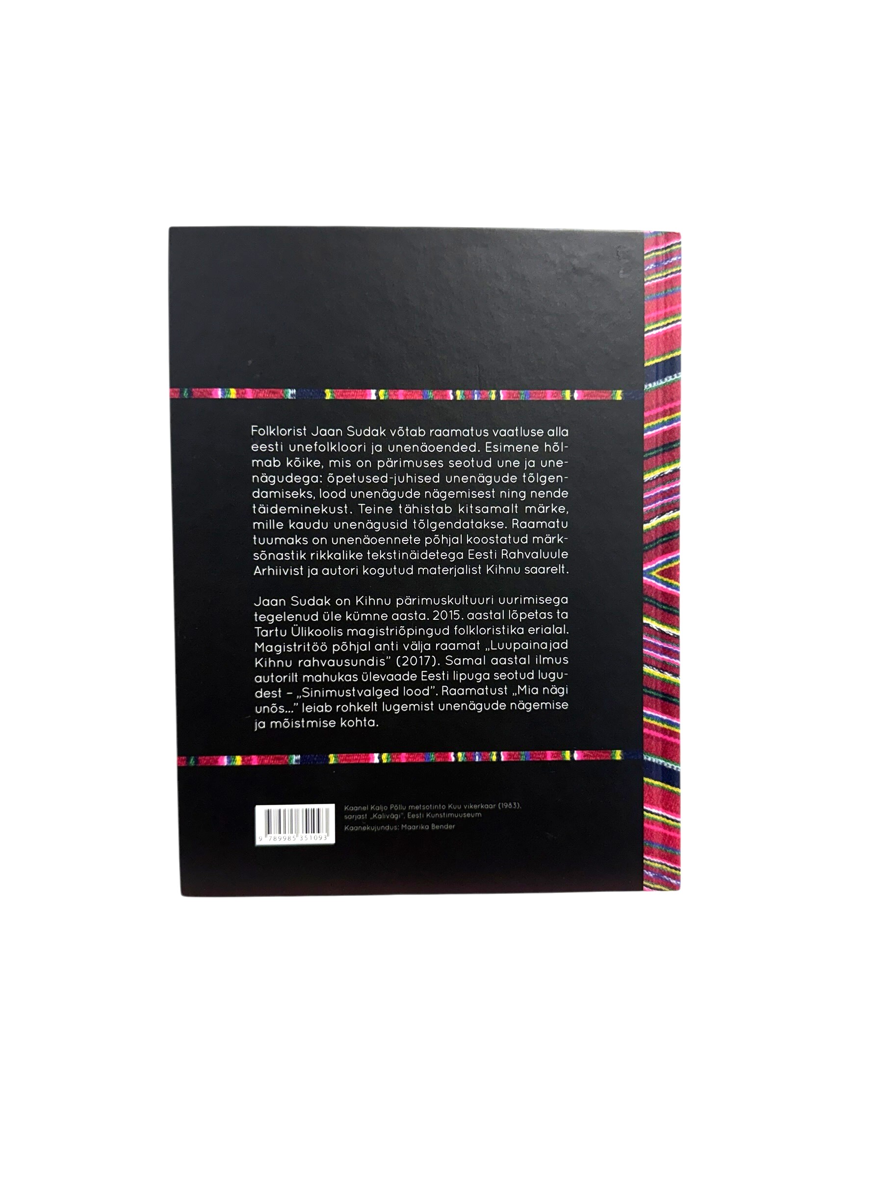 Lisamärkused: Folklorist Jaan Sudak võtab raamatus vaatluse alla eesti unefolkloori ja unenäoended. Esimene hõlmab kõike, mis on pärimuses seotud une ja unenägudega: õpetused-juhised unenägude tõlgendamiseks, lood unenägude nägemisest ning nende täideminekust. Teine tähistab kitsamalt märke, mille kaudu unenägusid tõlgendatakse. Raamatu tuumaks on unenäoennete põhjal koostatud märksõnastik rikkalike tekstinäidetega Eesti Rahvaluule Arhiivist ja autori kogutud materjalist Kihnu saarelt. Jaan Sudak on Kihnu pärimuskultuuri uurimisega tegelenud üle kümne aasta. 2015. aastal lõpetas ta Tartu Ülikoolis magistriõpingud folkloristika erialal. Magistritöö põhjal anti välja raamat „Luupainajad Kihnu rahvausundis“ (2017). Samal aastal ilmus autorilt mahukas ülevaade Eesti lipuga seotud lugudest – „Sinimustvalged lood“. Raamatust „Mia nägi unõs…“ leiab rohkelt lugemist unenägude nägemise ja mõistmise kohta.