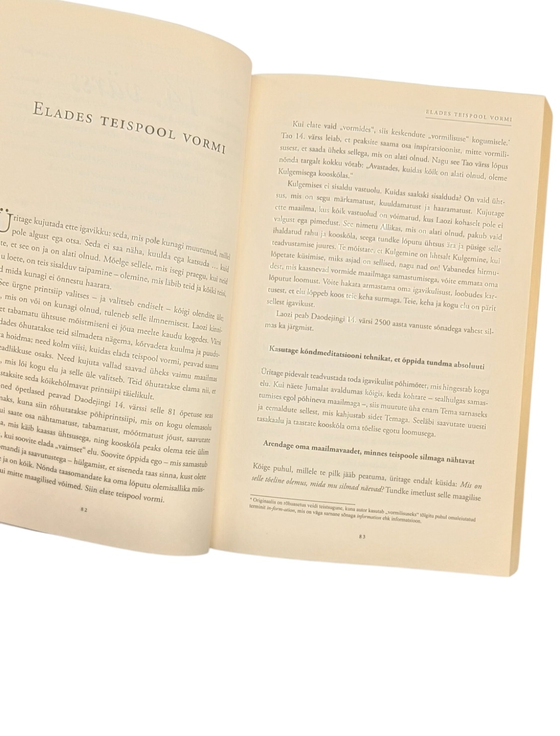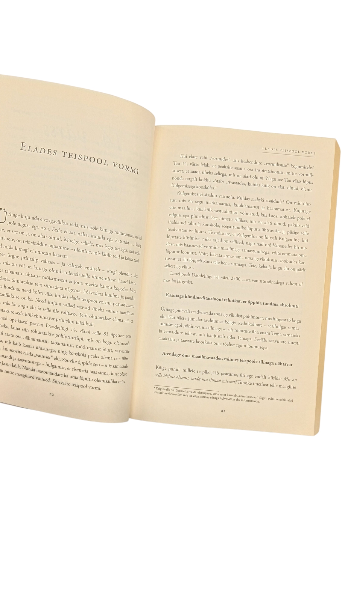 Selle erakordse raamatu jaoks vaatas menukirjanik dr Wayne W. Dyer läbi sadu Daodejingi tõlkeid ning pani kirja 81 esseed, kuidas rakendada Laozi muistset tarkust tänapäeva moodsas maailmas. Iga peatükk pakub juhiseid Tao ehk „Suure Kulgemise“ ellurakendamiseks tänapäeval. Wayne veetis terve aasta Laozi õpetusi lugedes, uurides ja nende üle mediteerides, harjutades neid iga päev ja pannes viimaks kirja need lühiesseed, mis annavad Laozi sõnu edasi viisil, nagu ta uskus olevat teile kasulik.