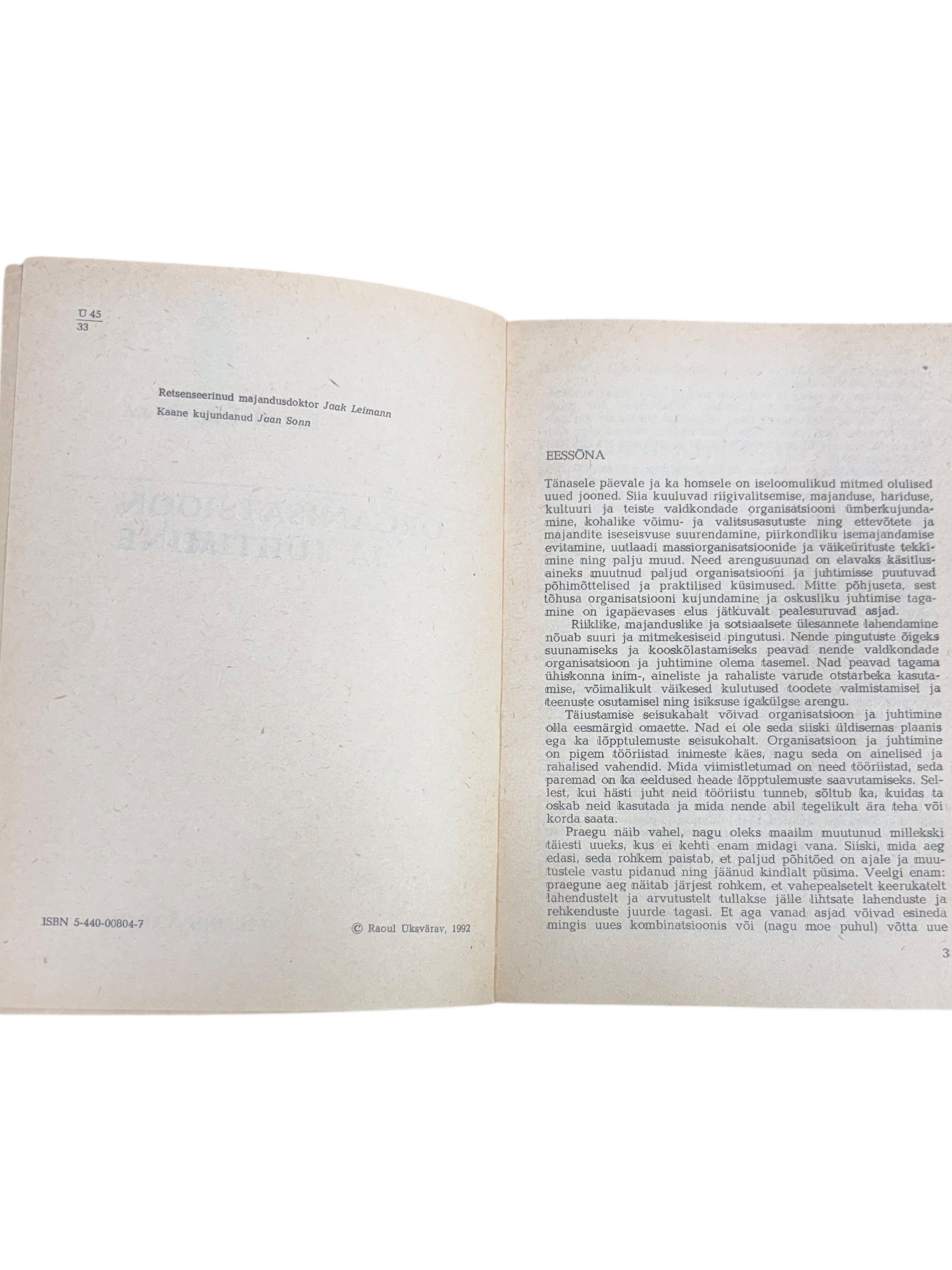 ”Organisatsioon ja juhtimine” Raoul Üksvärav (1992)
