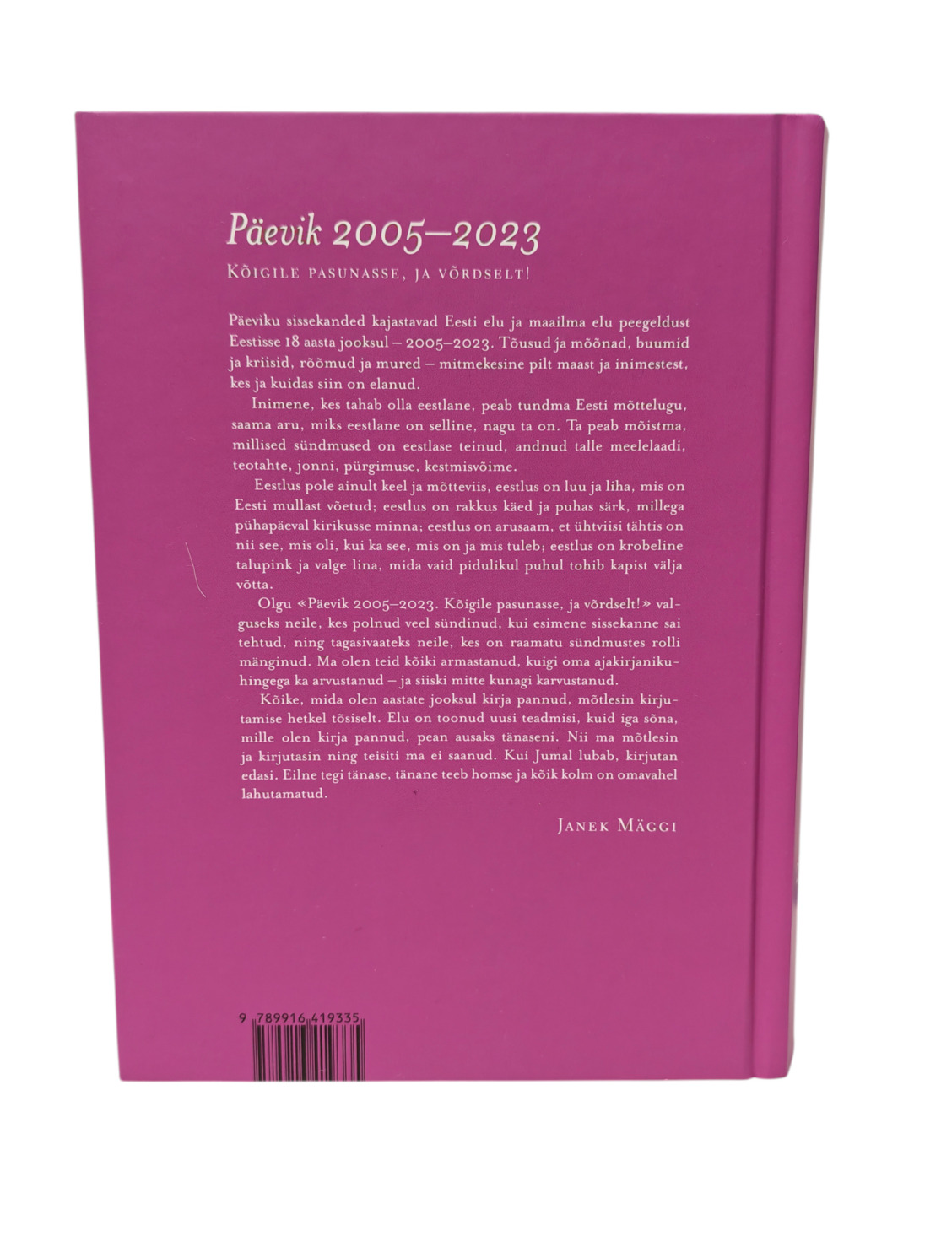 “Päevik 2005-2023. Kõigile pasunasse, ja võrdselt!” Janek Mäggi