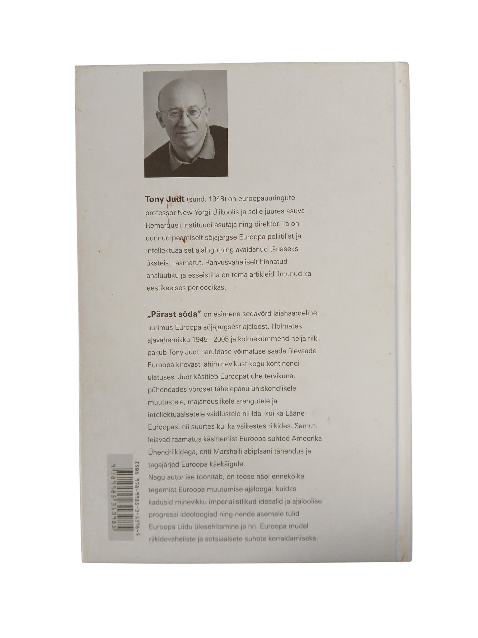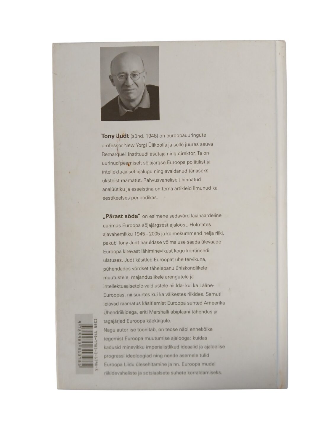 Tony Judt (sünd. 1948) on euroopauuringute professor New Yorgi Ülikoolis ja selle juures asuva Remarque’i Instituudi asutaja ning direktor. Ta on uurinud peamiselt sõjajärgse Euroopa poliitilist ja intellektuaalset ajalugu ning avaldanud tänaseks üksteist raamatut. Rahvusvaheliselt hinnatud analüütiku ja esseistina on tema artikleid ilmunud ka eestikeelses perioodikas.