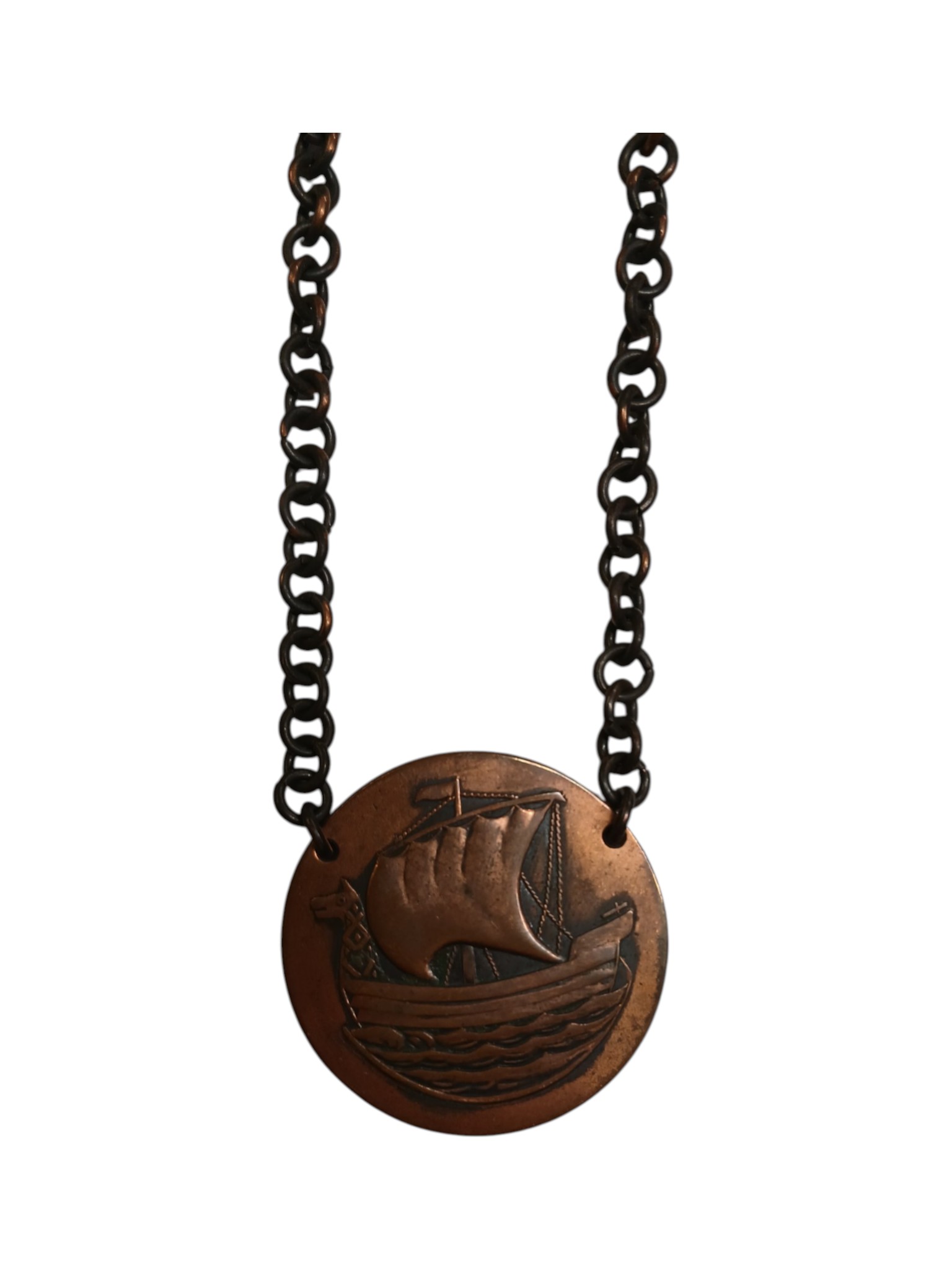 Pronksist viikingilaeva motiiviga kaelakee