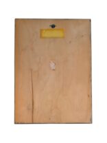 Metallplaat kinnitatud vineerist alusele.