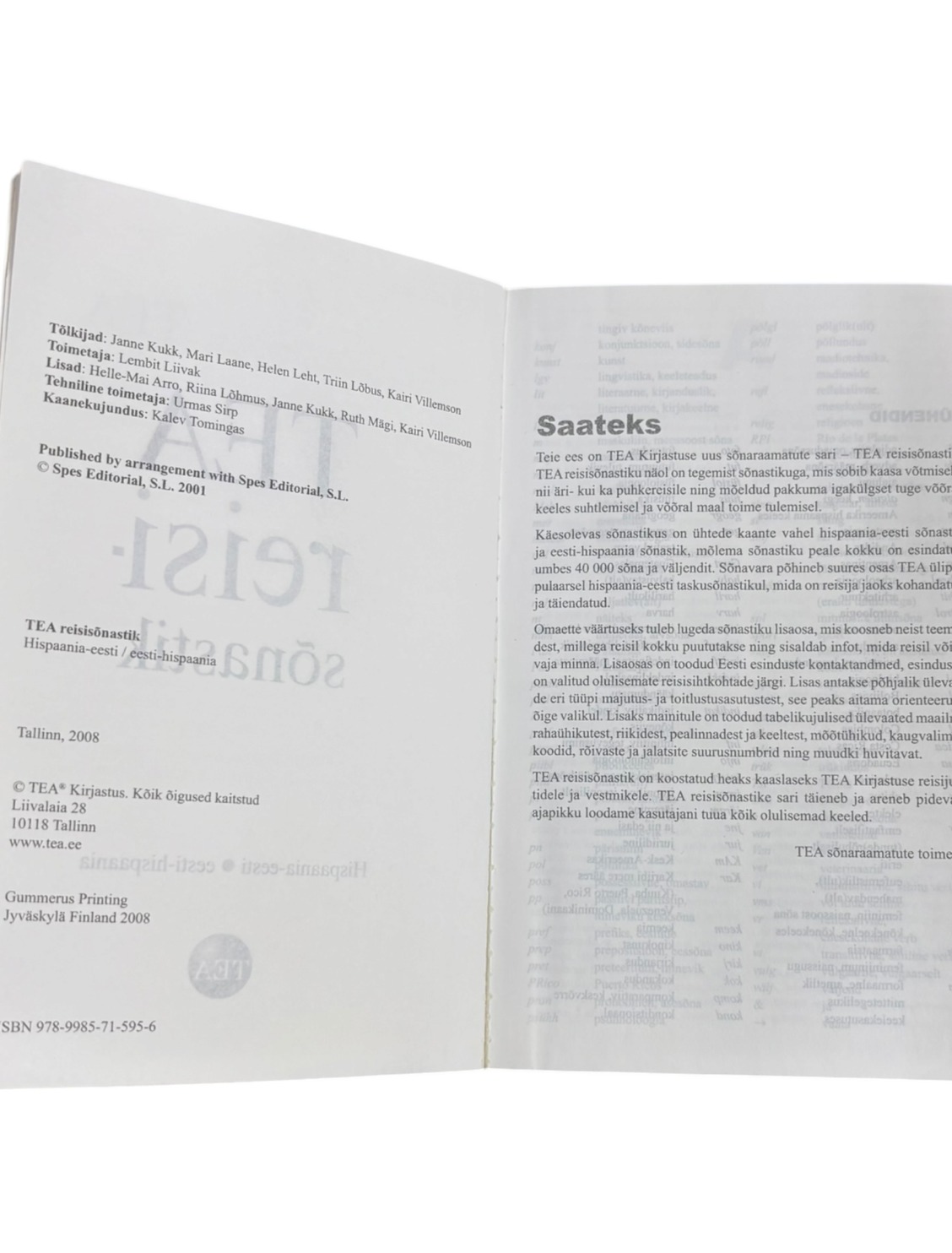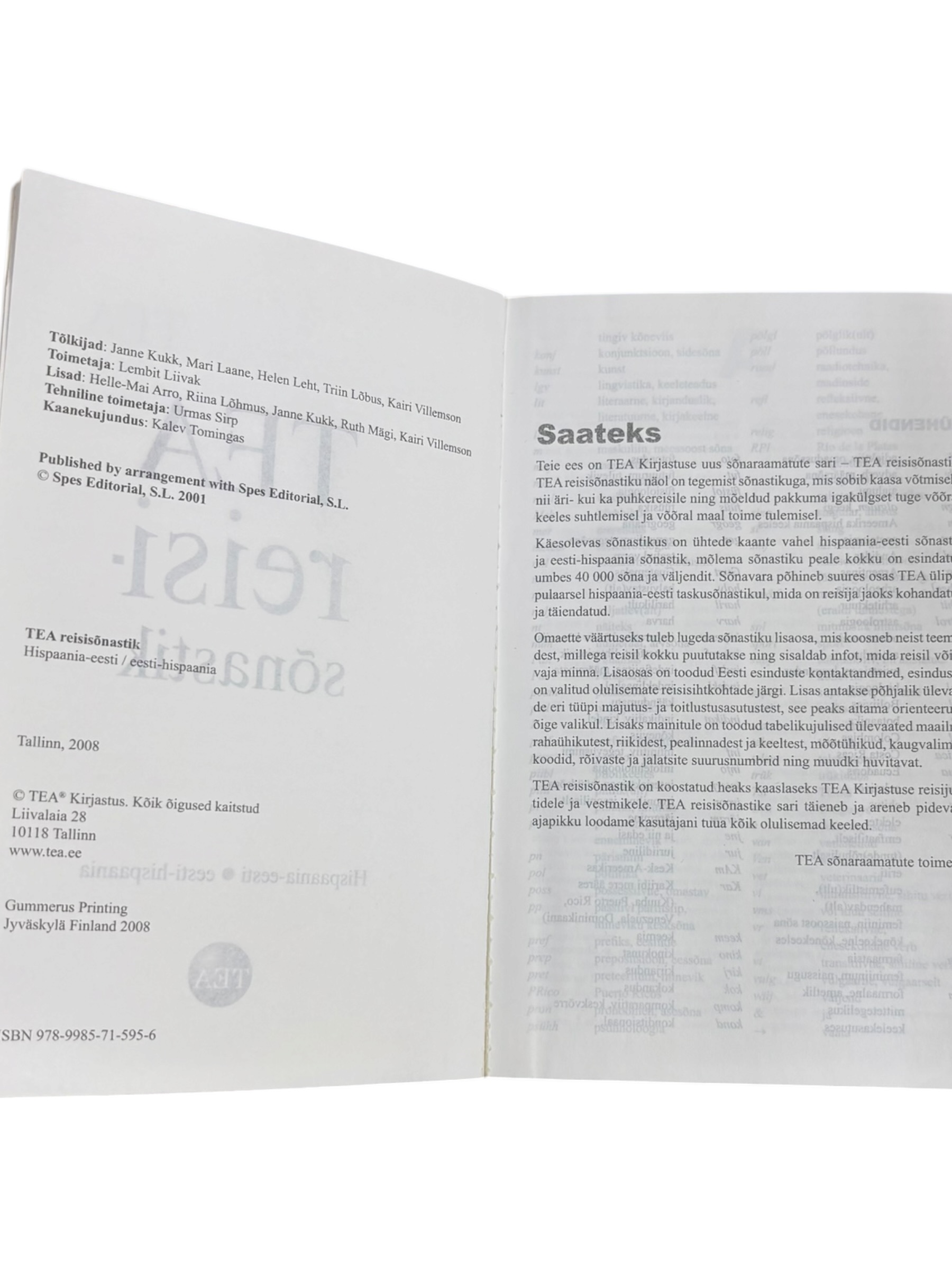 ”TEA reisisõnastik Hispaania-Eesti Eesti-Hispaania” TEA