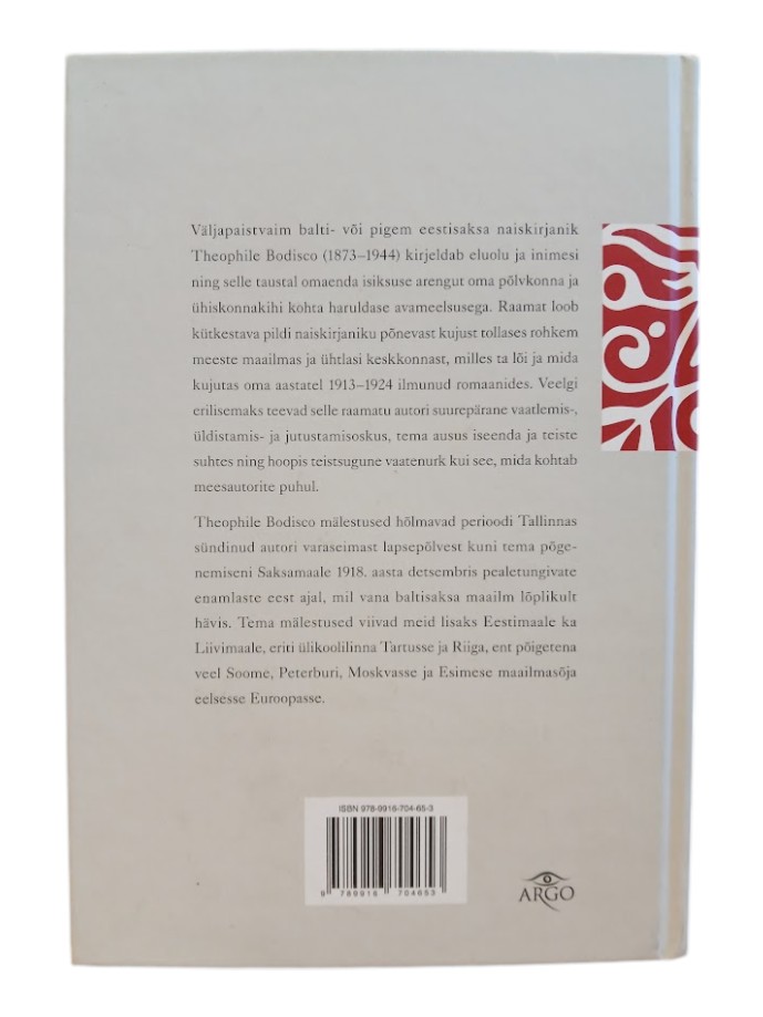 Väljapaistvaim balti- või pigem eestisaksa naiskirjanik Theophile von Bodisco (1873–1944) kirjeldab eluolu ja inimesi ning selle taustal omaenda isiksuse arengut oma põlvkonna ja ühiskonnakihi kohta haruldase avameelsusega. Raamat loob kütkestava pildi naiskirjaniku põnevast kujust tollases rohkem meeste maailmas ja ühtlasi keskkonnast, milles ta lõi ja mida kujutas oma aastatel 1913–1924 ilmunud romaanides. Veelgi erilisemaks teeb selle raamatu autori suurepärane vaatlemis-, üldistamis- ja jutustamisoskus, tema ausus iseenda ja teiste suhtes ning hoopis teistsugune vaatenurk kui see, mida kohtab meesautorite puhul.