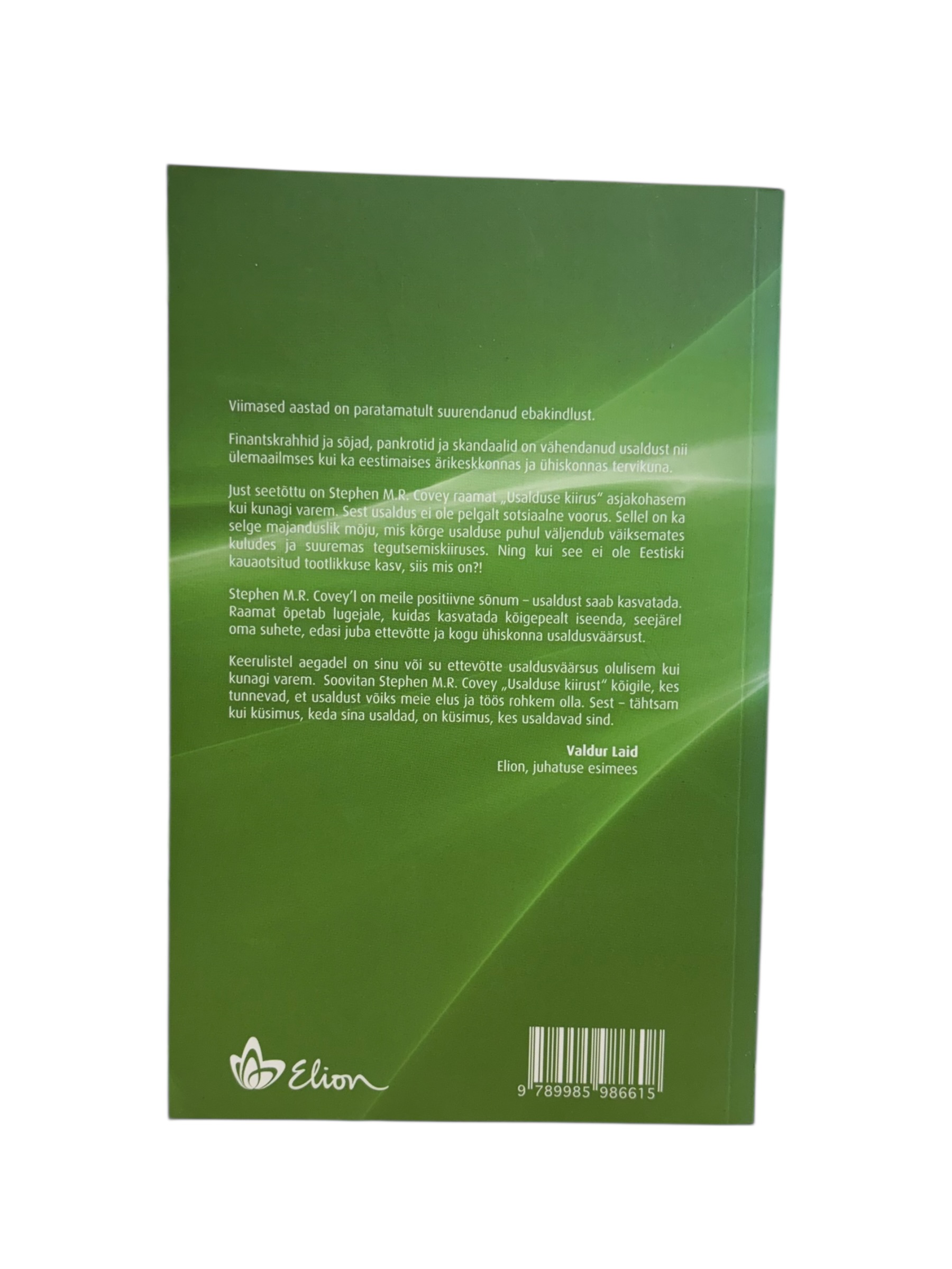 Ole esimene, kes paneb toote ''Usalduse kiirus'' Stephen M. R. Covey korvi 15 minutiks, enne kui keegi teine selle ostab!