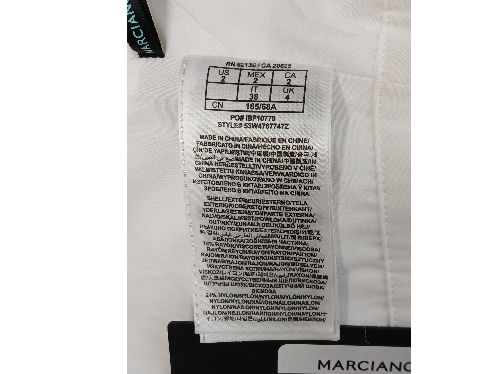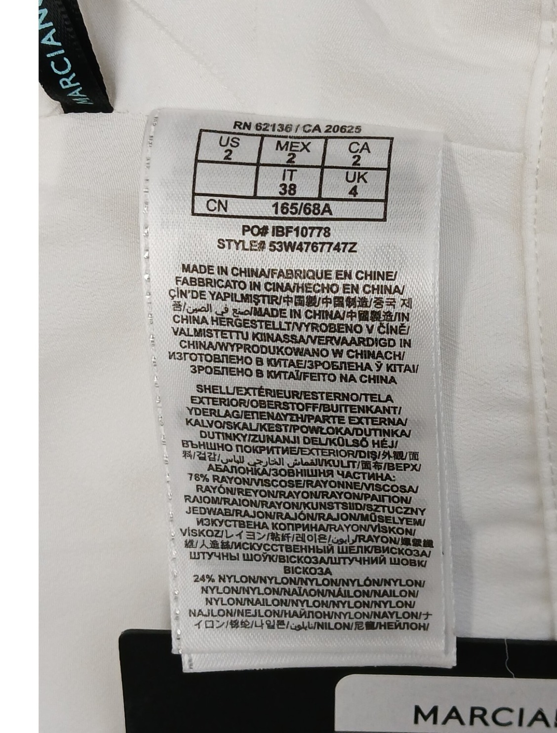 Materjal: 76% viskoos, 24% nailon; vooder: 100% polüester