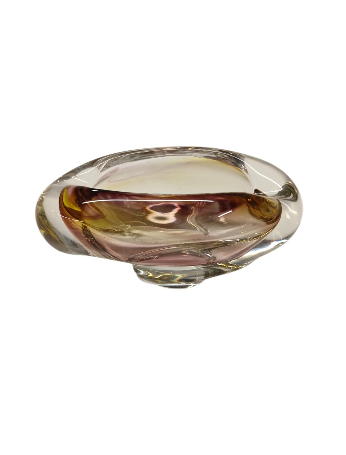 Lisamärkused: paksust klaasist, sees kollast ja lillakat tooni.