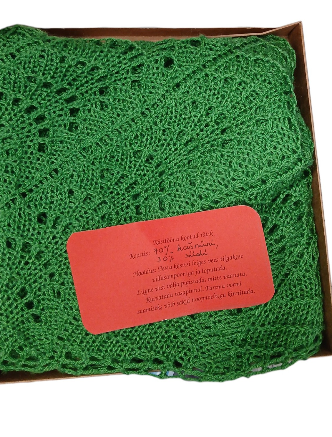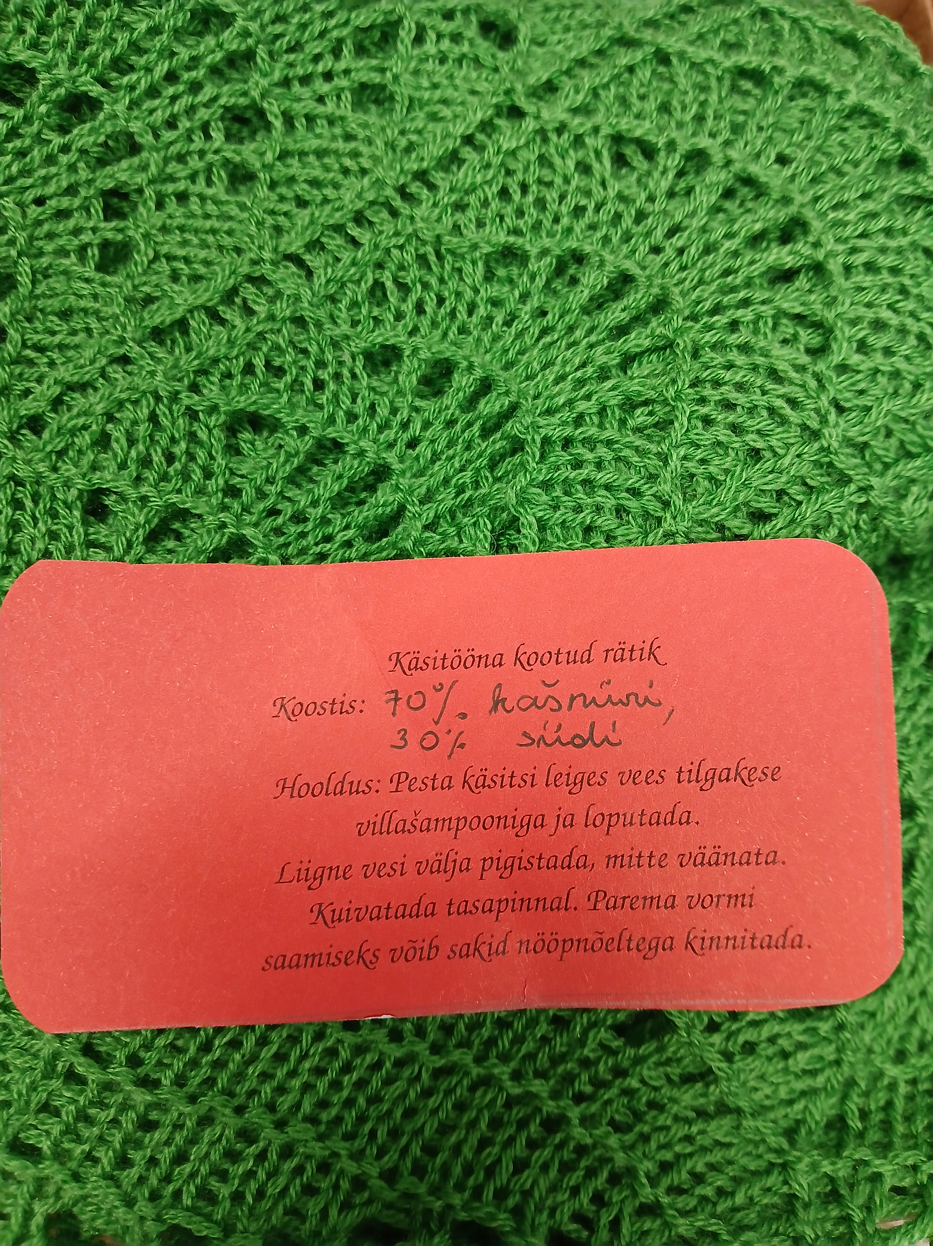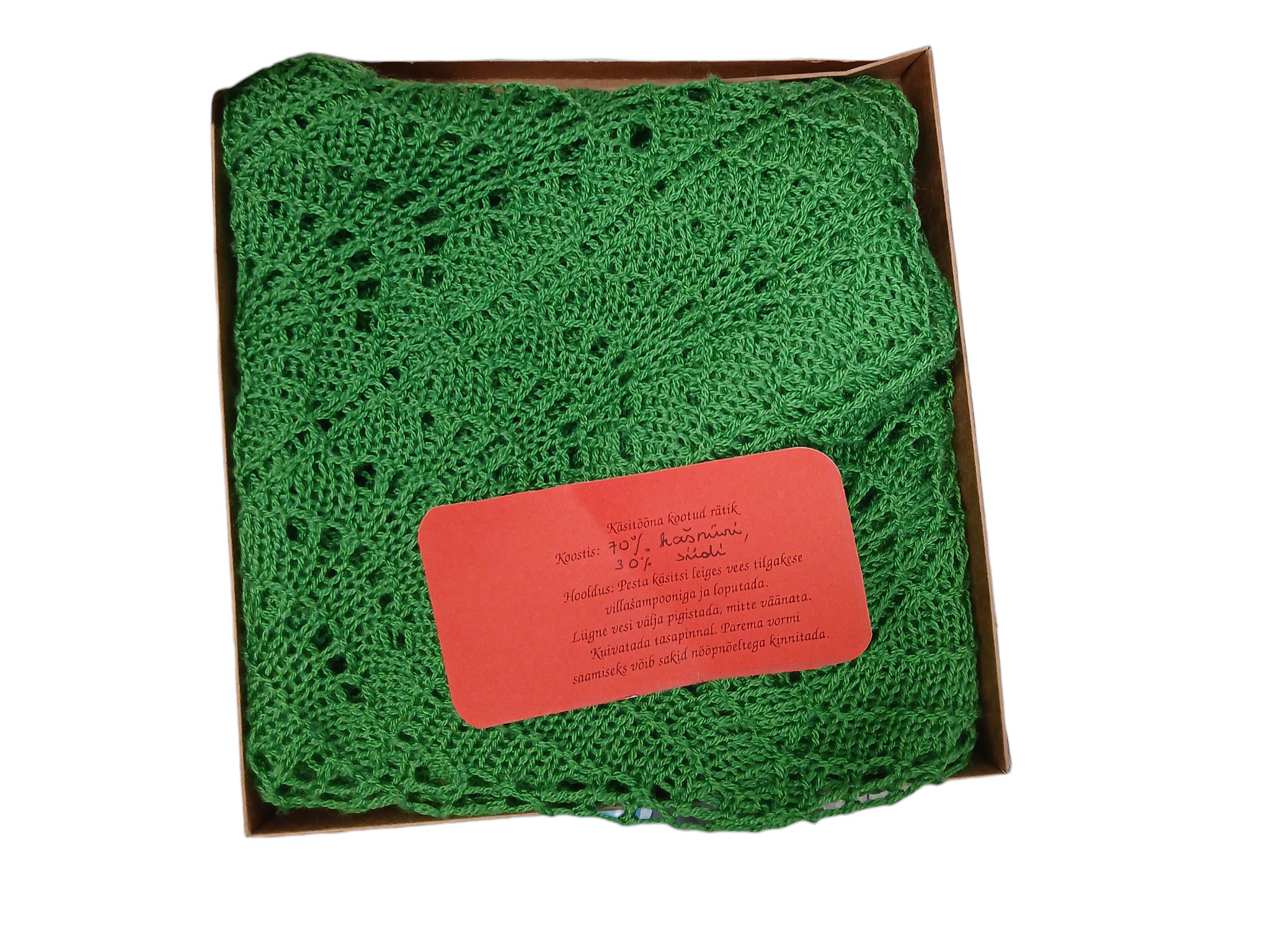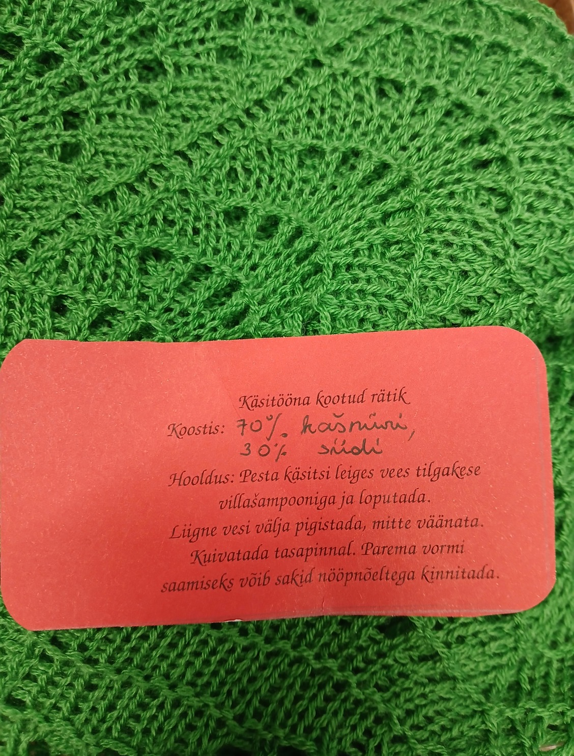 Käsitööna kootud rätik.