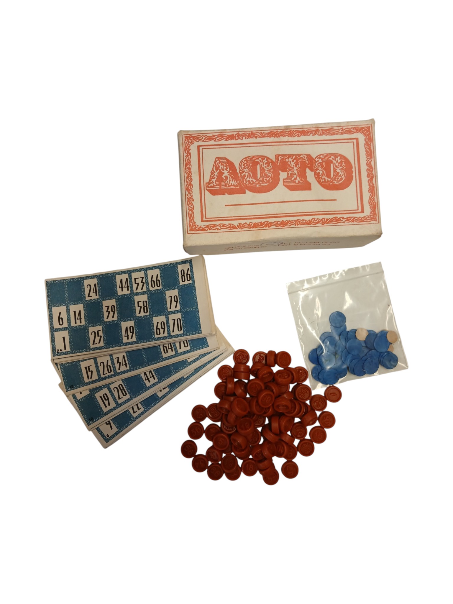Lisamärkused: karbis 24 numbritega tähistatud mängualust, 90 pruunikat nuppu, sinised plastikust nupud