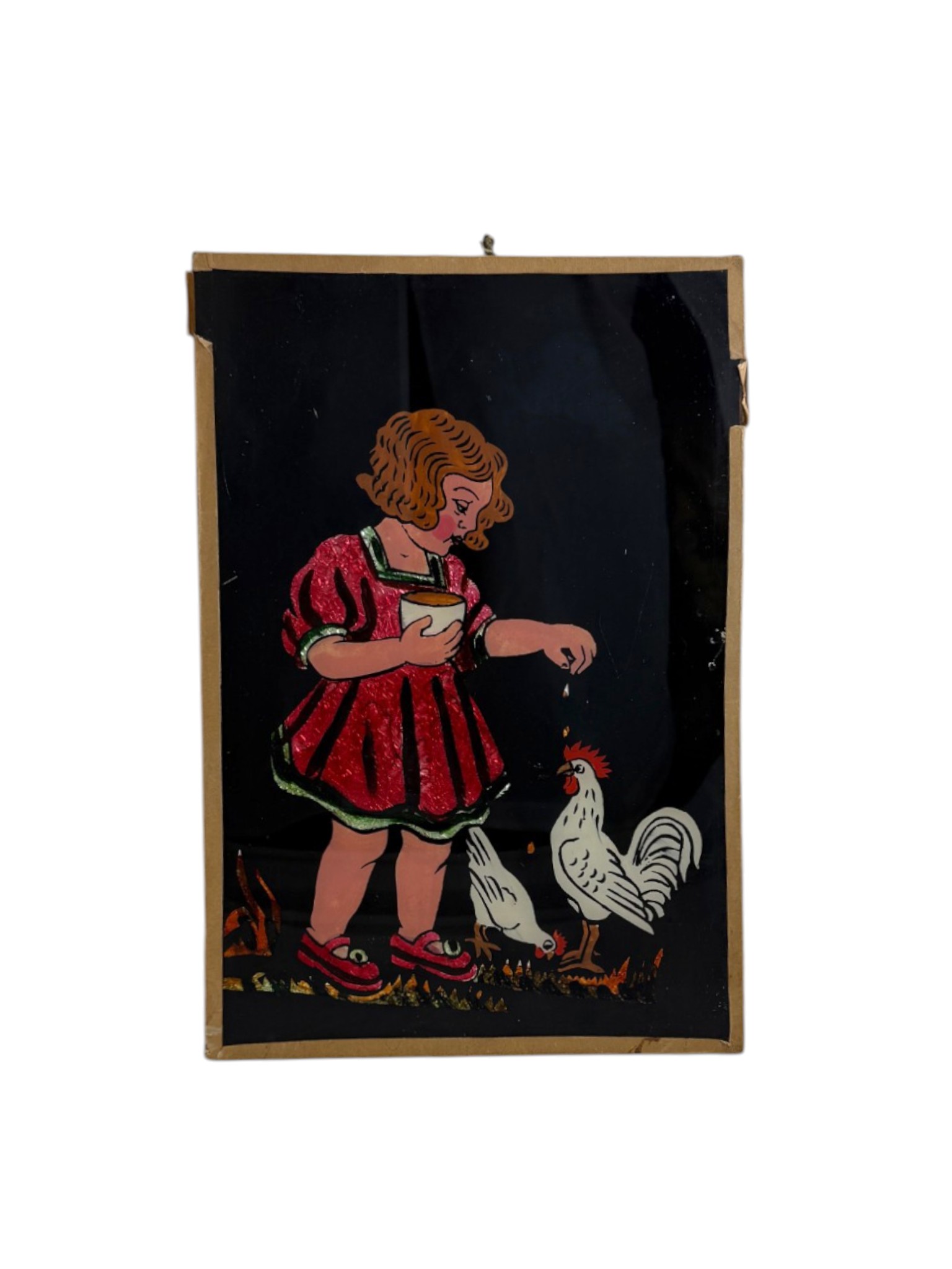 Vintage pilt tüdruku ja kanaga