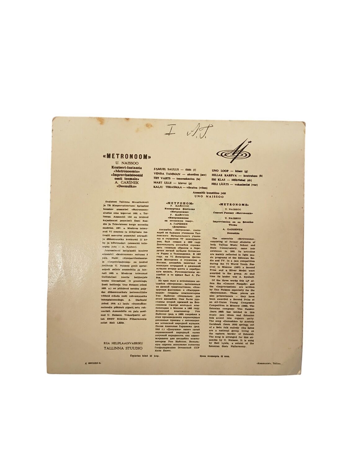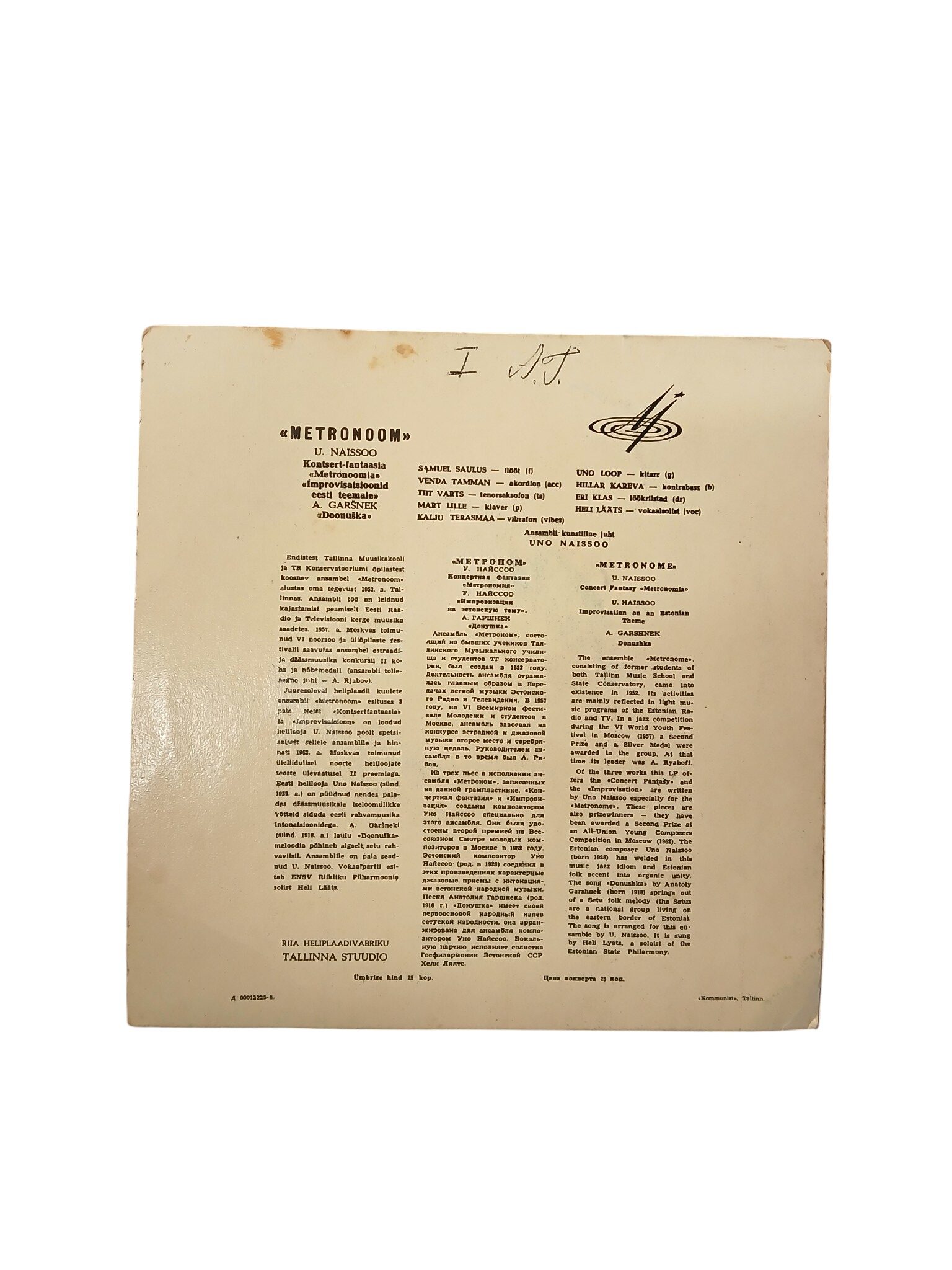 Koosseis tegutses 50-ndatel ja koosnes legendaarsetest muusikutest nagu Heli Lääts, Uno Loop (kitarril), Kalju Terasmaa jne. Trumme mängib antud salvestusel ei keegi muu, kui Eri Klas isiklikult. Uno Naissoo kirjutas spetsiaalselt sellele koosseisule kontsertfantaasia “Metronoomia” ja pala “Improvisatsiooni”.