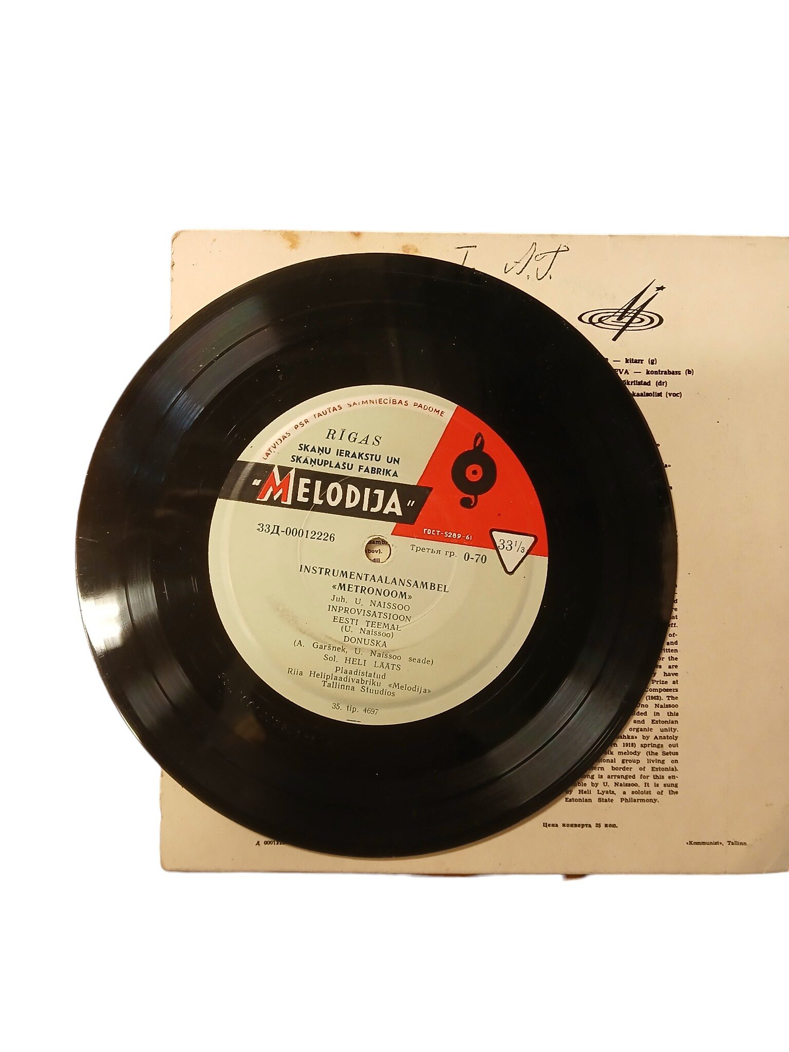 Lisamärkused: 7-tolline vinüül ansamblilt Metronoom aastast 1963. Töökorras, võib olla natuke raginat mõnes kohas – vähesel määral.